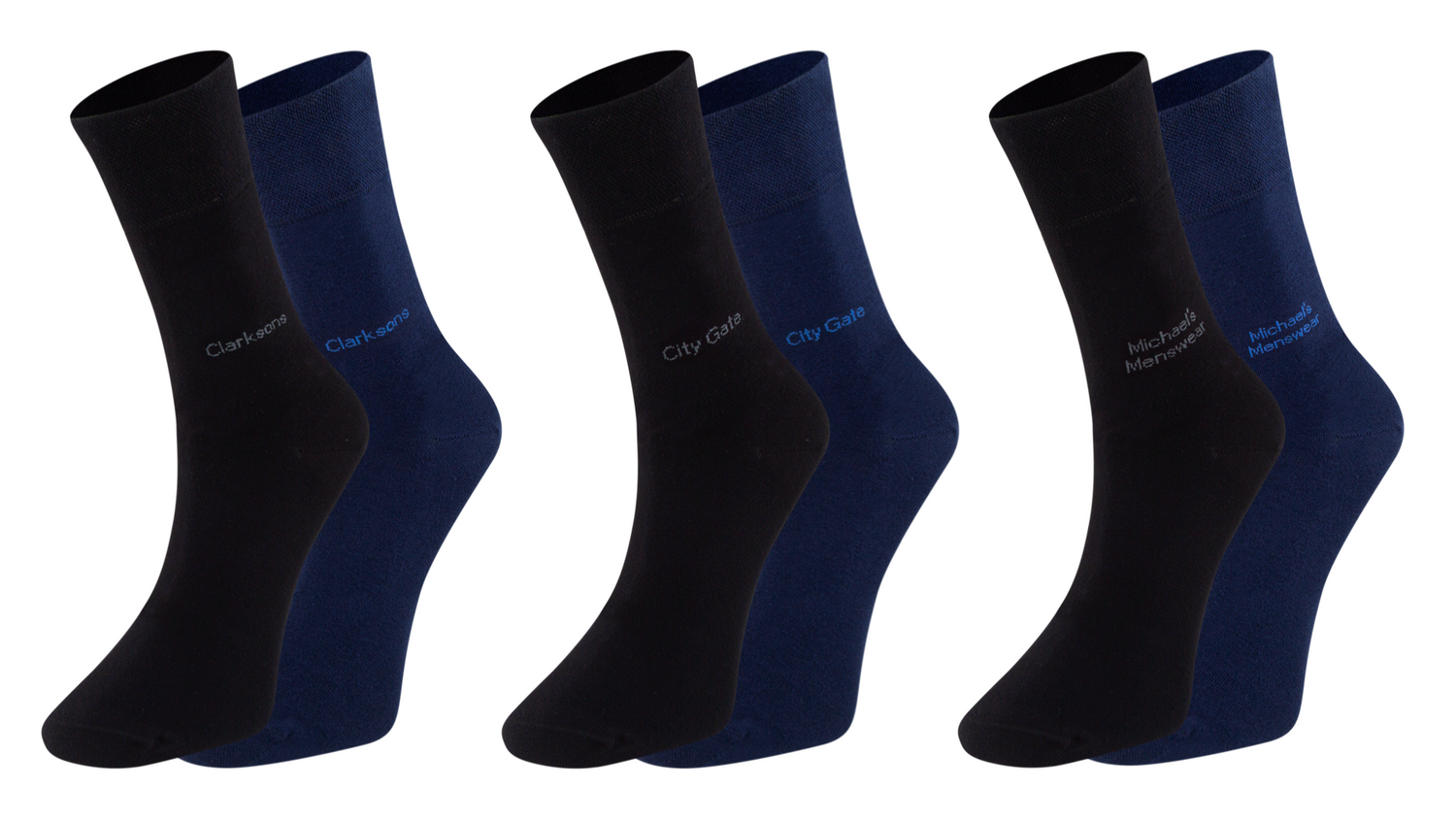We can even go as far as offering our stockists customised stocks in black and navy, with their shop name and slogan knitted into the fabric.