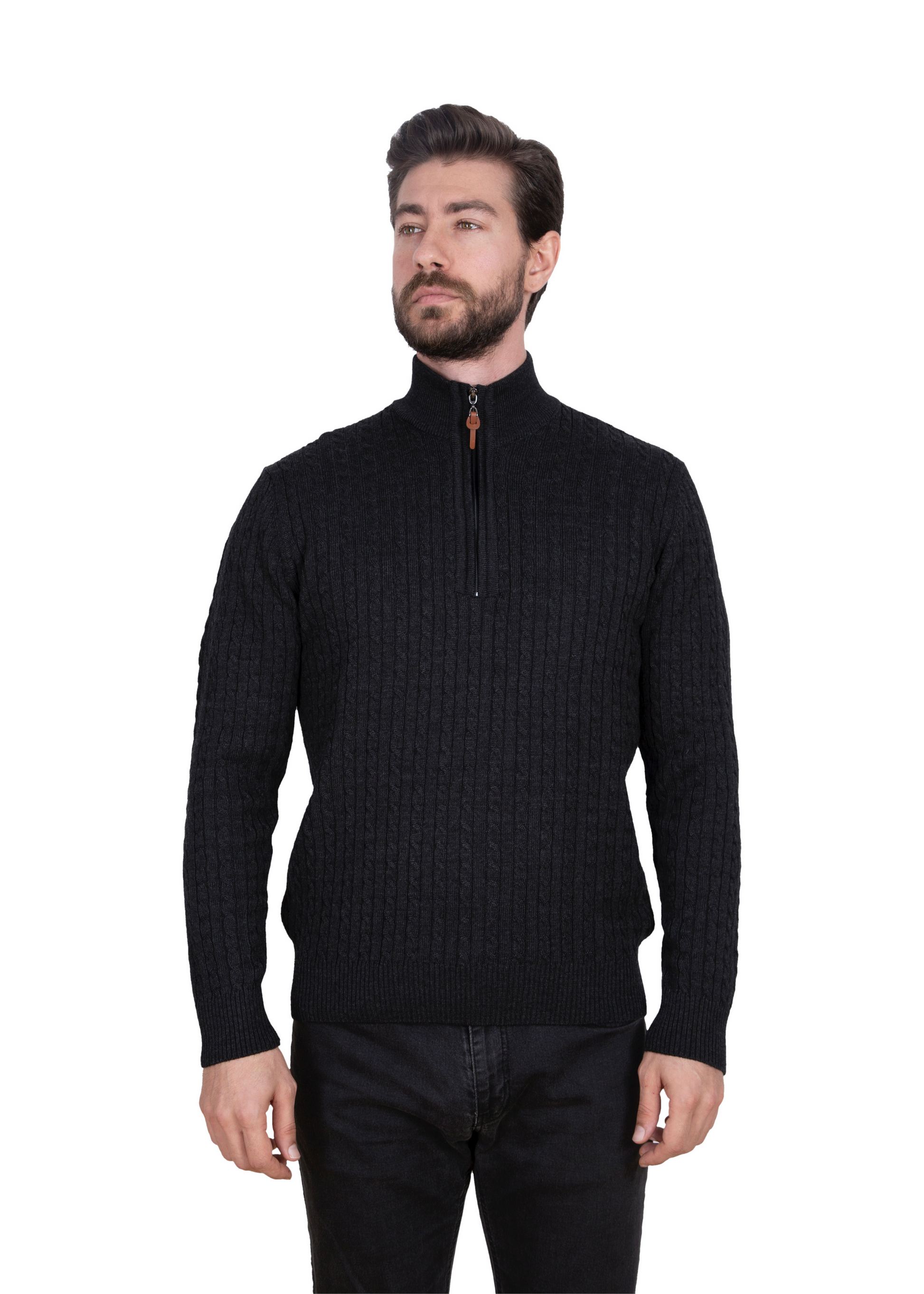 Men's Charcoal Mildura Wool Cable Knit Quarter-Zip Jumper