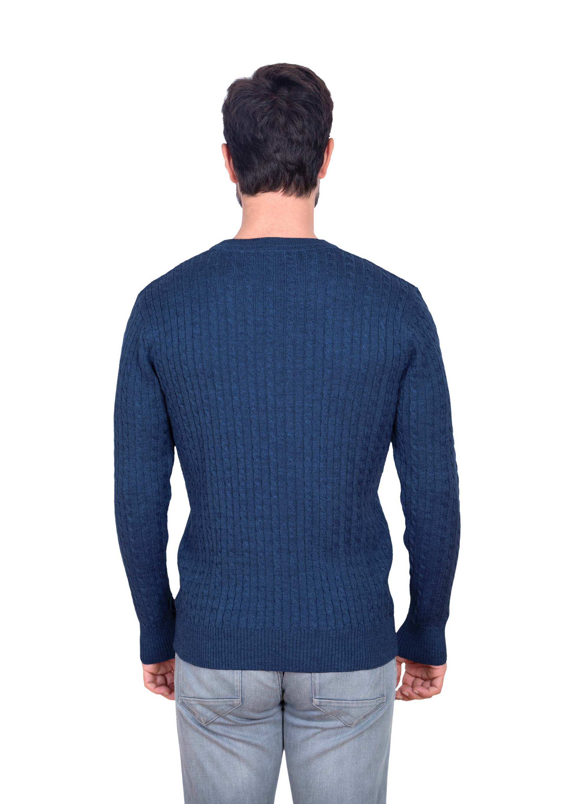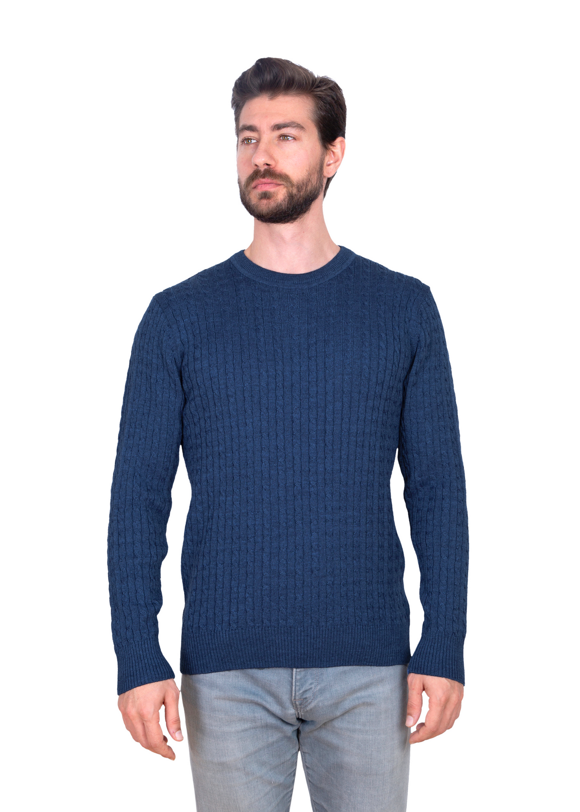 Men's Indigo Mildura Wool Cable Knit Crew Neck Jumper
