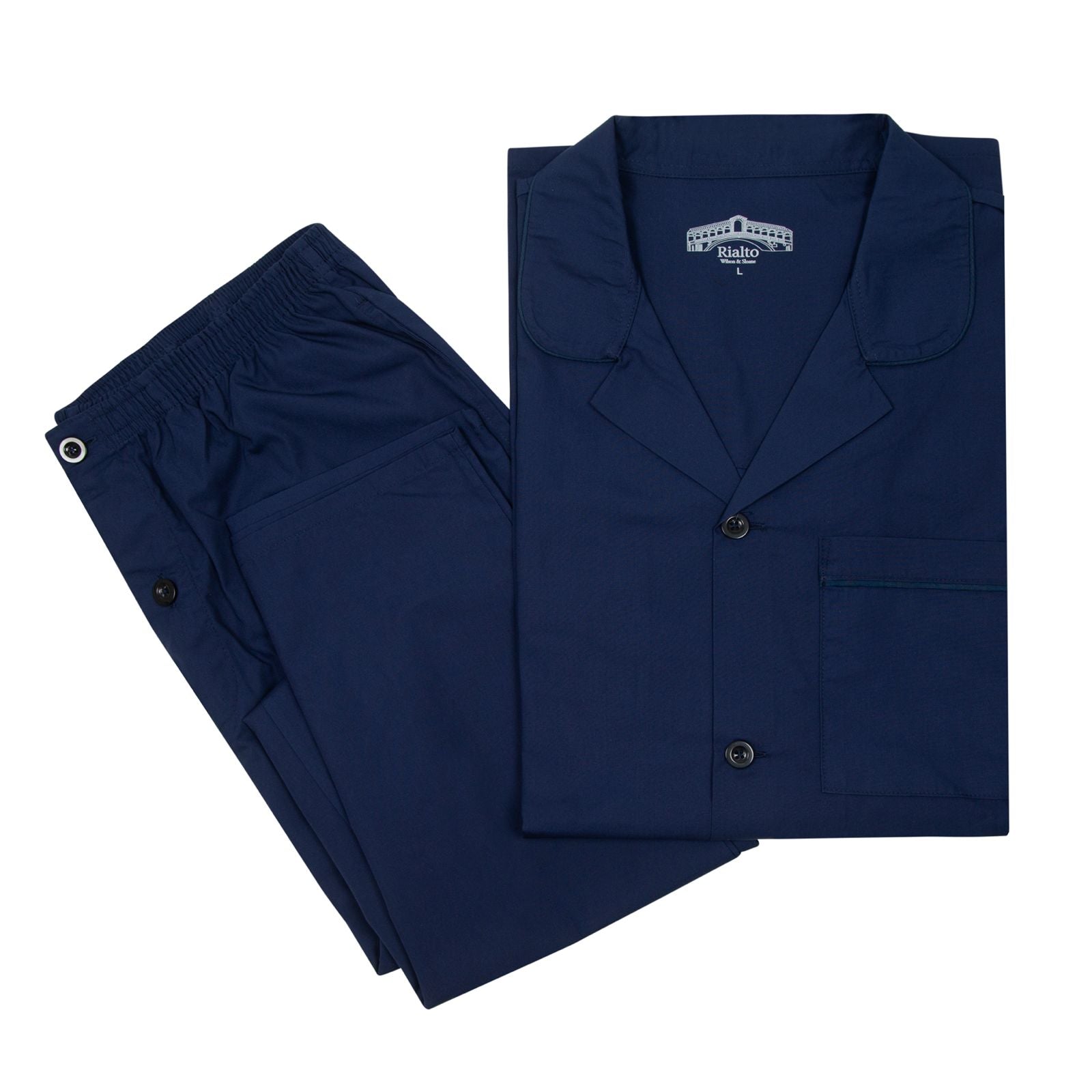 Men's Plain Navy Pyjama Set - 100% Cotton